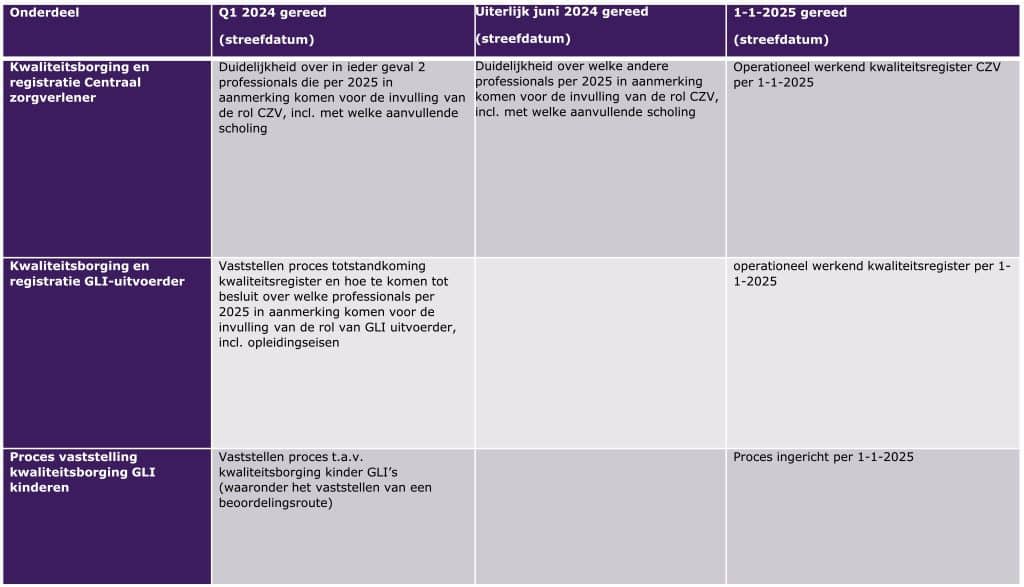 De planning voor het realiseren van de randvoorwaarden voor brede implementatie vanaf 2025 staat in het schema hieronder: